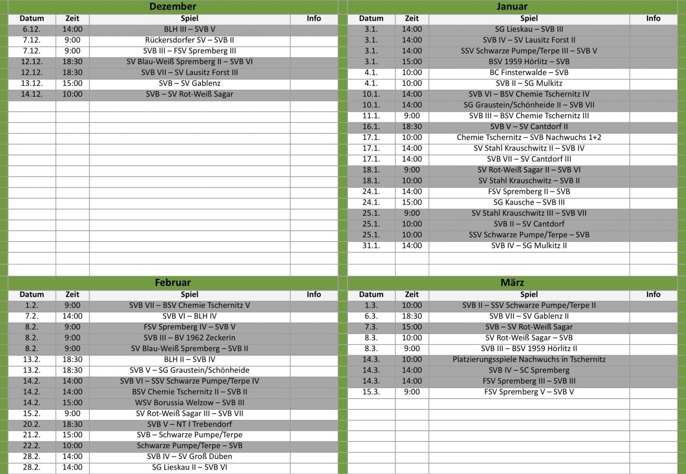 3. + 4. Mannschaft ab 18:00 Uhr