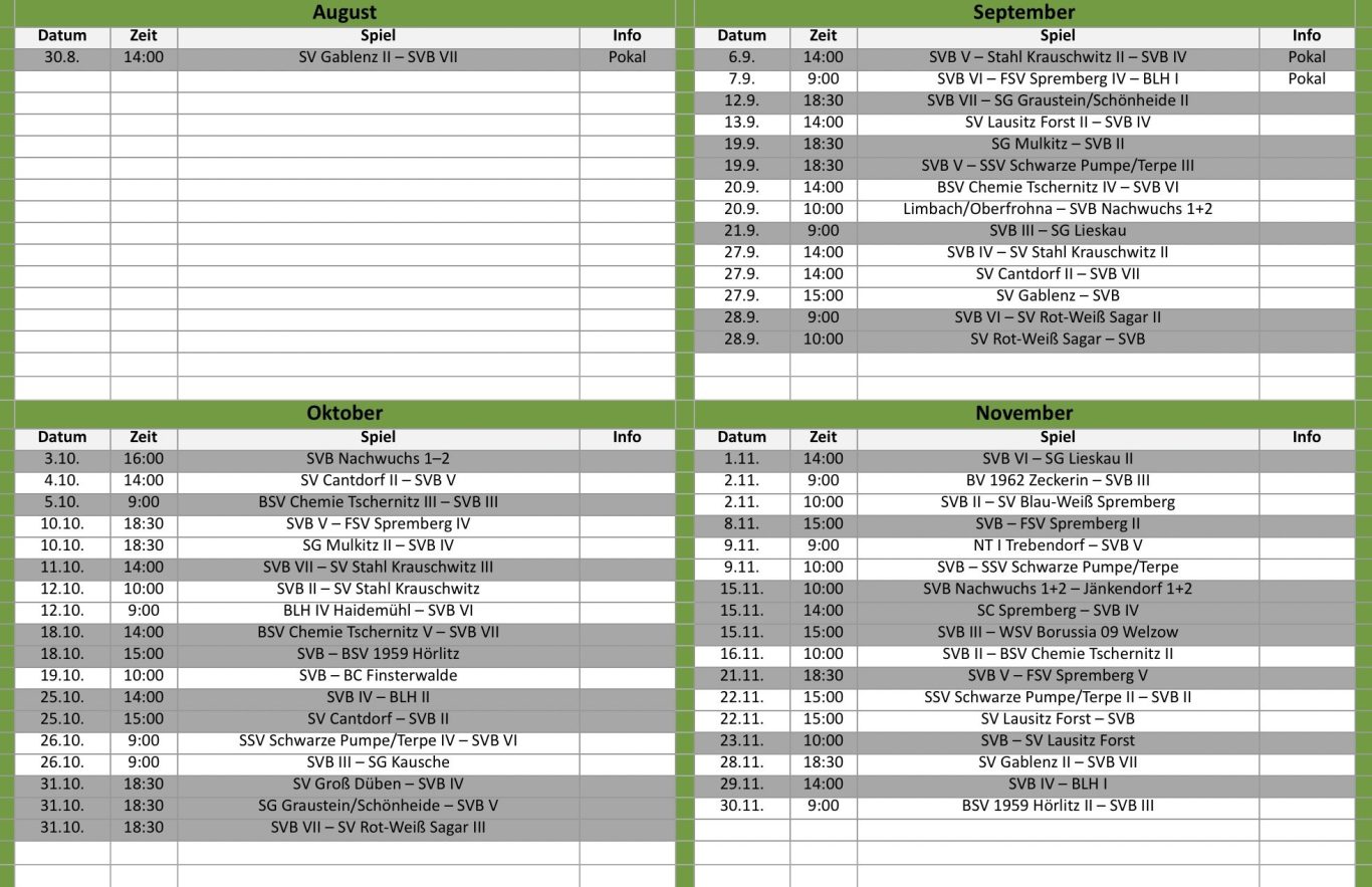 Jahreskalender Saison 2025 / 2026